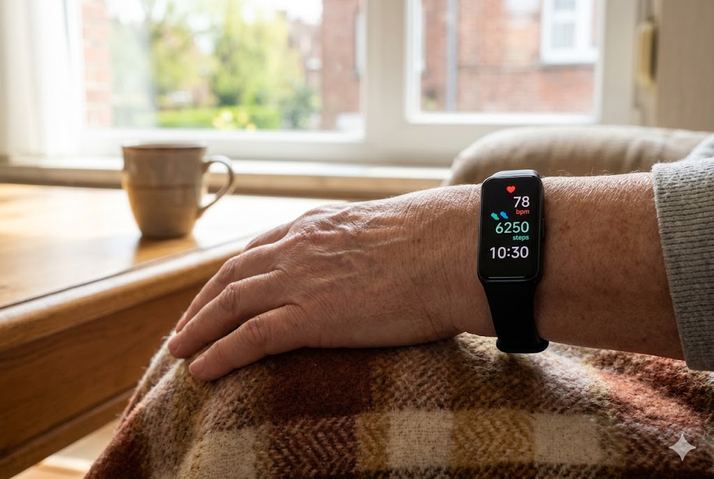 Exemple concret : Mme Renaud porte une montre simple la journée et un petit tracker discret la nuit, et ses médecins ont enfin obtenu des données de sommeil cohérentes.